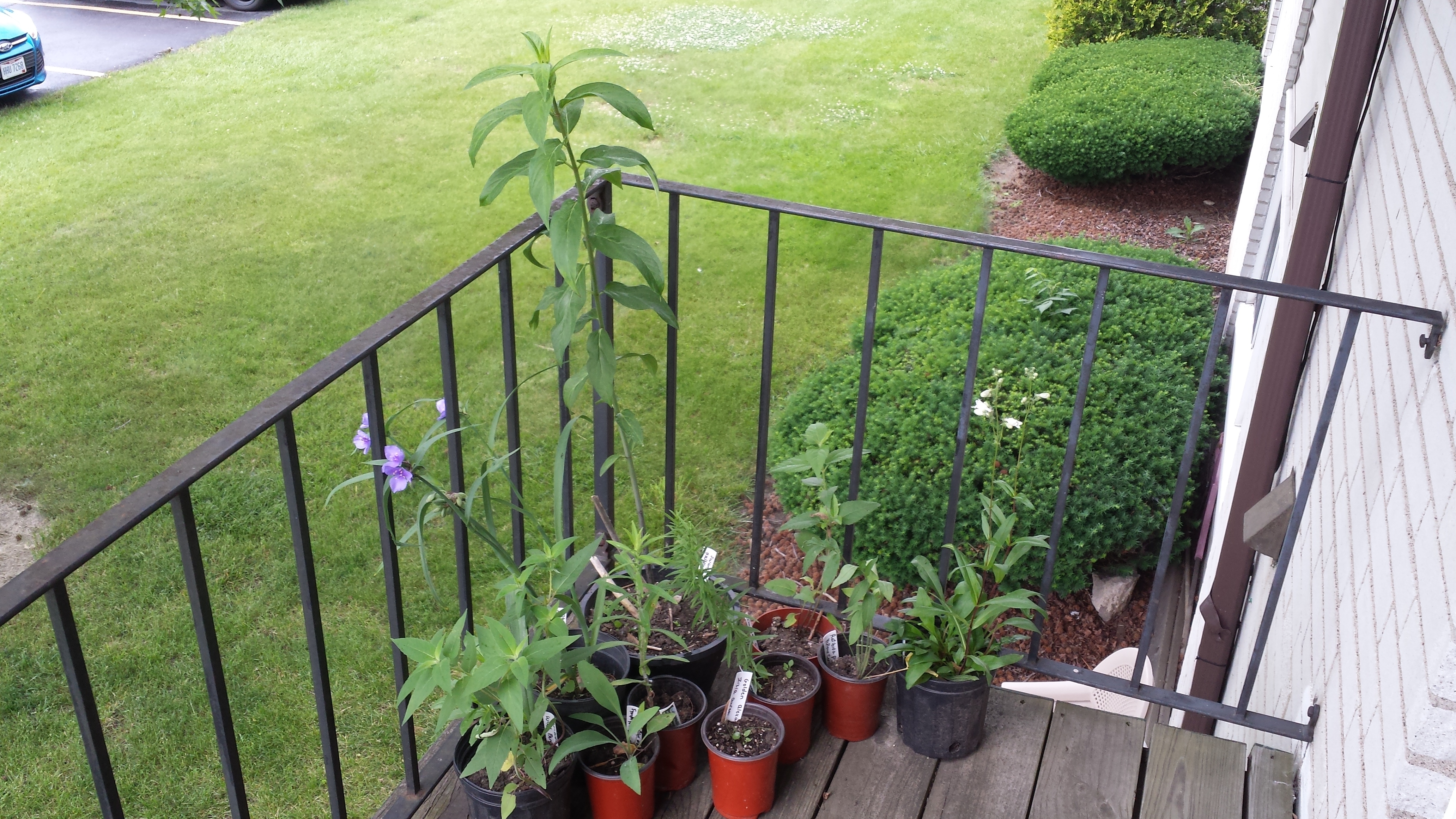 As a second-floor tenant with no traditional garden space available to me, I thought I would be limited to only houseplants until I moved out, bought a house, and had land to call my own. The fact that I had only a balcony didn’t inspire me with much faith that I could create habitat. Early on, I tried to grow some vegetables without much luck. Not far from my balcony is a sweetgum tree (Liquidambar sp.) that partially shades my garden in the summer, making it a bad spot for growing tomatoes.